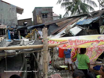 Malabon liegt im Nord-Westen der Metro Manila in der Nähe der Manila Bay, damit im Einzugsbereich der Gezeiten, die das tägliche Leben vieler Menschen beeinträchtigen. Zweimal täglich werden immer wieder ganze Straßenzüge überflutet. Die Regenzeit (Juni bis Oktober) verstärkt die Situation. Infektionskrankheiten bestimmen den Alltag.In Malabon leben auf 20 km² 433.048 Einwohner (offizielle Statistik, 2015), das bedeutet eine Einwohnerdichte von unglaublichen 23.179 Einwohnern pro km².Der Anteil der Squatter beträgt über 40% (auch das ist nur eine Schätzung). Fast alle Menschen leben in drangvoller Enge, eine selbstgebaute Hütte steht neben der anderen. In einem kleinen Raum wohnt, isst und schläft die ganze Familie. Oft sind die brüchigen Unterkünfte Pfahl-bauten, denn der Untergrund ist sumpfig, Meer und Flüsse sind nah.Wegen unzureichender Deiche sind Überschwemmungen häufig. Wochenlang bleibt das Wasser unter den Hütten stehen, nimmt Müll und Unrat der vielen Menschen auf, eine wahre Brutstätte für Krankheiten. Wenn das nächste Hochwasser die trübe Flut in die Hütten trägt, haben die meisten Menschen keinen Schlafplatz mehr, denn der war der Hüttenboden.Regelmäßiges Einkommen ist für die meisten Menschen eine Illusion. Sie sind oft Tagelöhner oder Saisonarbeiter, verdienen ihren kargen Lohn in der Fischindustrie, kümmern sich um die Fischteiche, sind Haushaltsgehilfinnen oder Wäscherinnen. Eine sechsköpfige Familie kann in der Regel ihre Grundbedürfnisse nicht befriedigen. Um zu überleben bzw. vernünftig leben zu können, braucht man einen regelmäßigen Job und einen Verdienst von mindestens Php350 (ca. 6,00 €/ Tag). Allein der Anteil der Bewohner, die unterhalb der Armutsgrenze von < 1 US$ leben, beträgt ungefähr 40%. Dadurch ist nicht nur das Essen karg. Auch Ärzte behandeln nur gegen Bezahlung. Infektionskrankheiten sind für die Slumbewohner eine tödliche Gefahr, weil ihre Körper nicht gegen sie geschützt sind. Außer der Grundschule sind Schulen gebührenpflichtig. Rum dagegen ist preis-wert. Jedes Problem verstärkt die anderen Probleme.In dieser totalen Ausweglosigkeit sind Dank unserer Initiative einige Wege erkennbar, die das Los der Betroffenen zumindest erleichtern.Unsere Projekte sind für die Notleidenden eine erste Möglichkeit, sich und Andere wenigstens teilweise von der entsetzlichen Armut zu befreien, wenn auch das Leben mehr als ärmlich bleibt.Finanzhilfen und Sachspenden von über 1.000.000 Euro seit der Gründung der Projektgruppe im Januar 1987 konnten in Malabon schon Wirkung zeigen.Besonders stolz sind wir auf einen enorm niedrigen Verwaltungsaufwand.DABEI ALLERDINGS