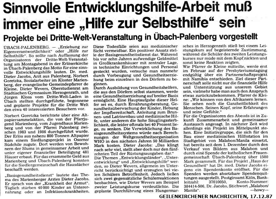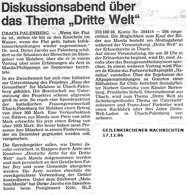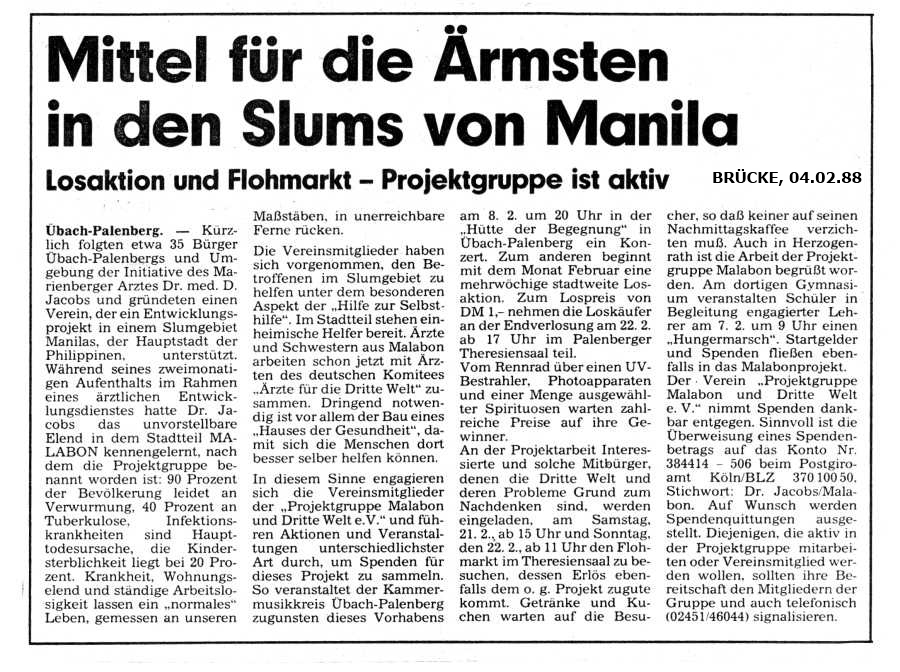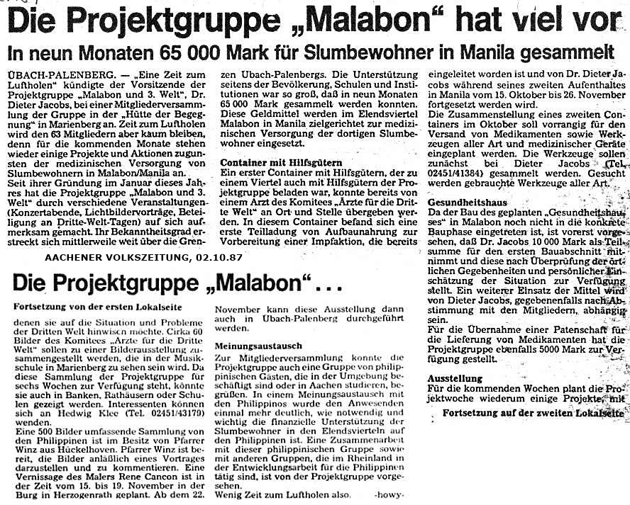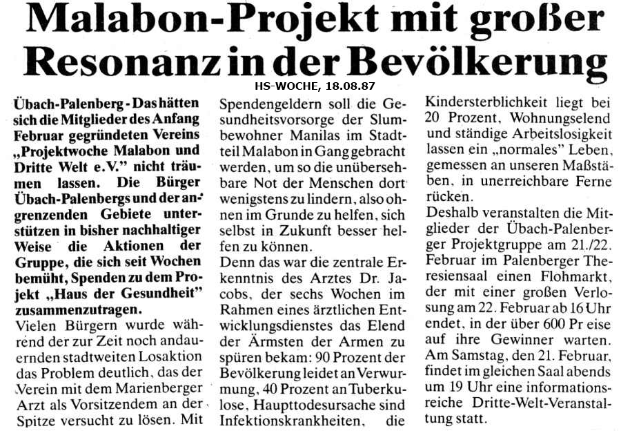 Archiv 1987-1986 - Projektgruppe Malabon und Dritte Welt e.V. D-52531 Übach-Palenberg