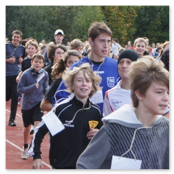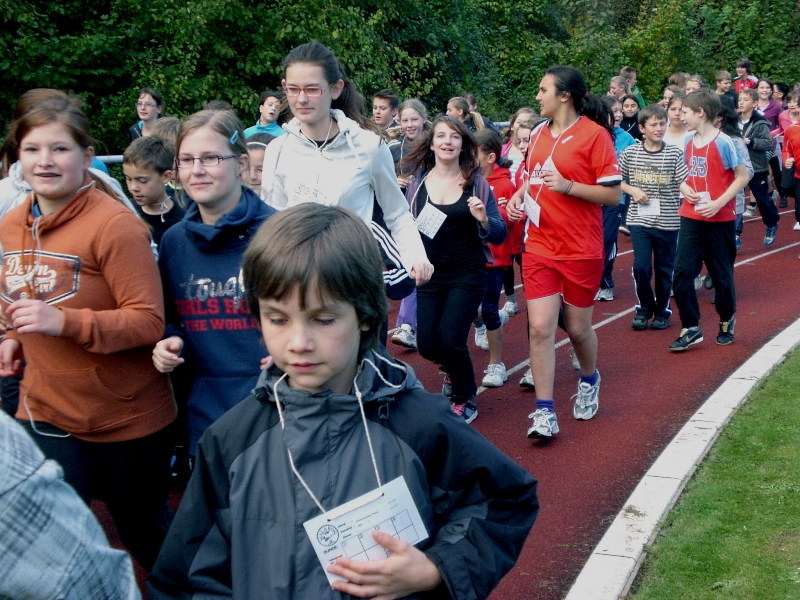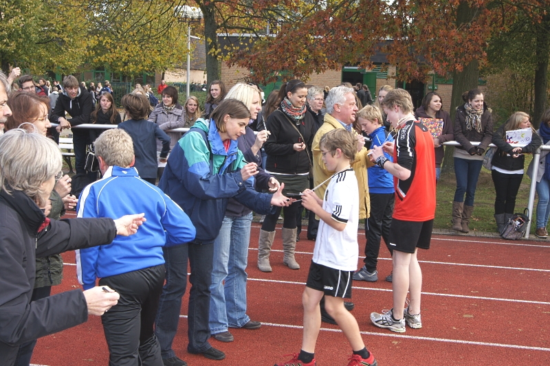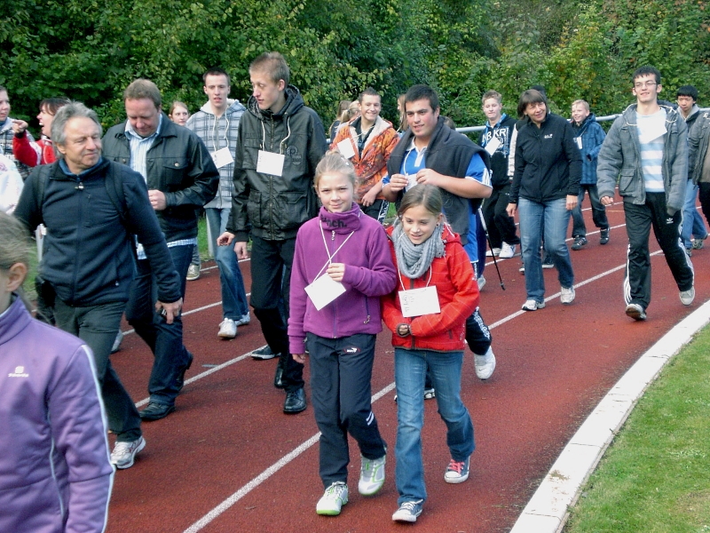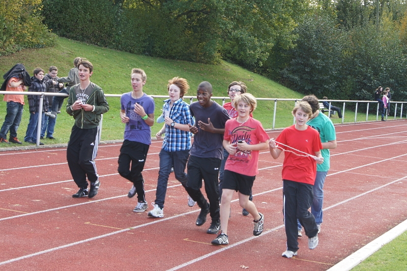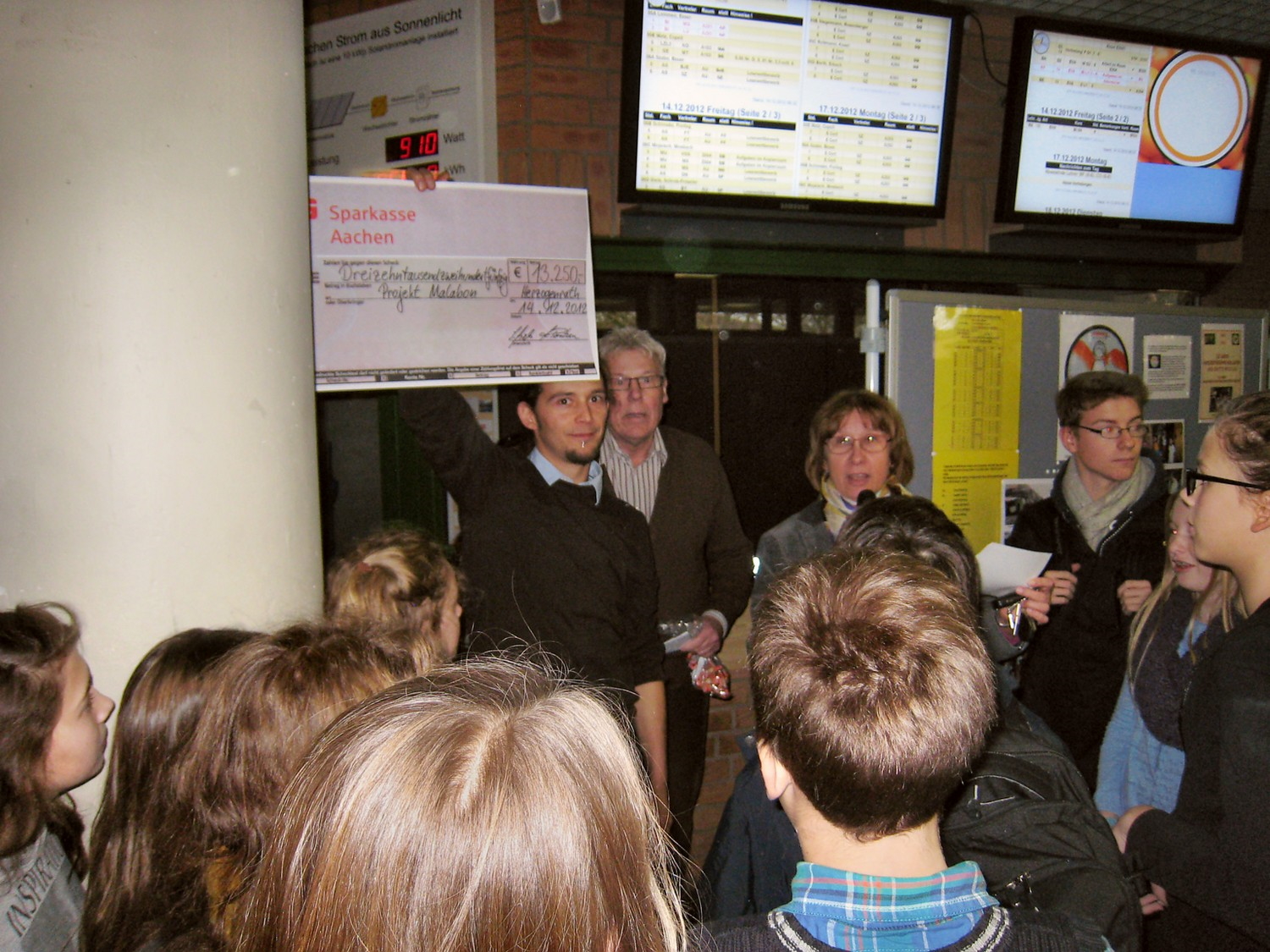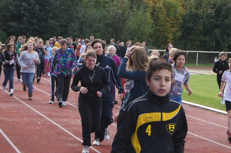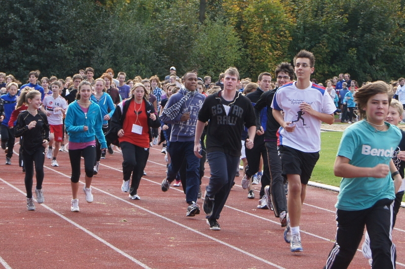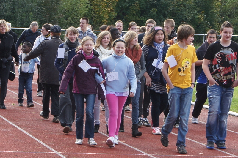 20.10.2011Am Städtischen Gymnasium findet in der 6. Stunde kein Unterricht statt. 434 Schüler-Innen, Lehrer und Eltern engagieren sich stattdessen beim 8. Malabonlauf für unsere Projekte. Darunter Fritz Jesch-ke, ehemaliger Schüler, der sein eigenes Kamerateam mitbrachte, um seinen tollen Einsatz zu filmen. Über 400€ Sponsorengelder sammelte er, um unsere Projekte zu unter-stützen.