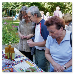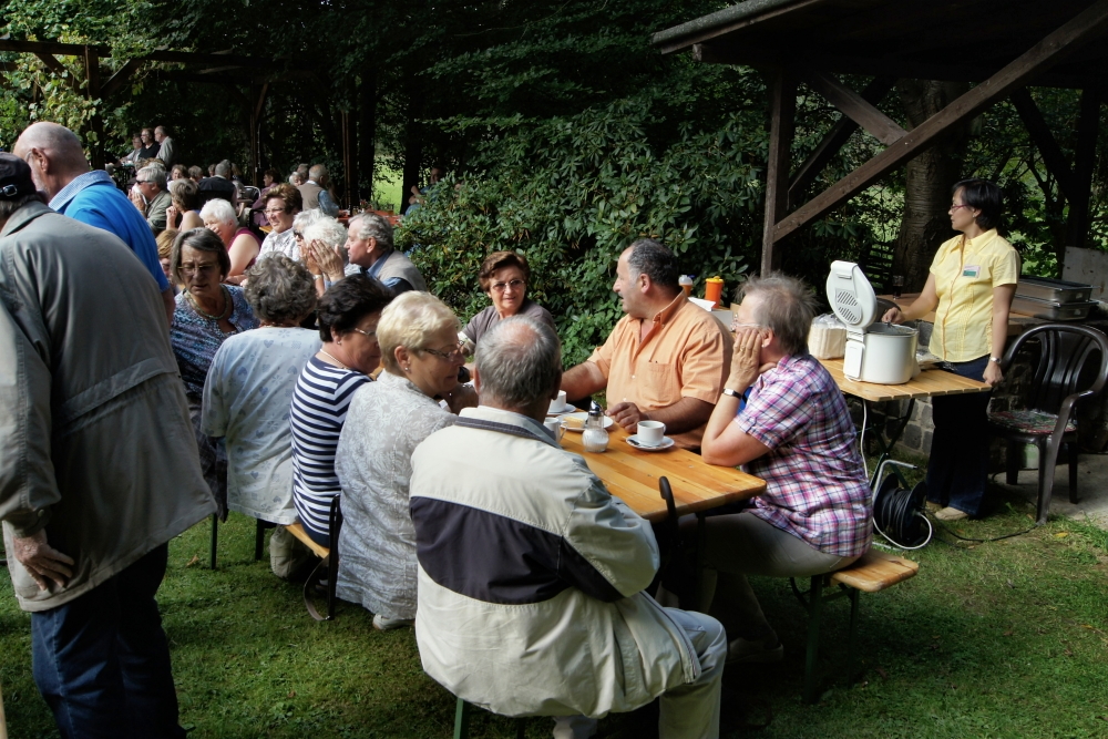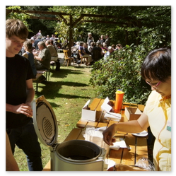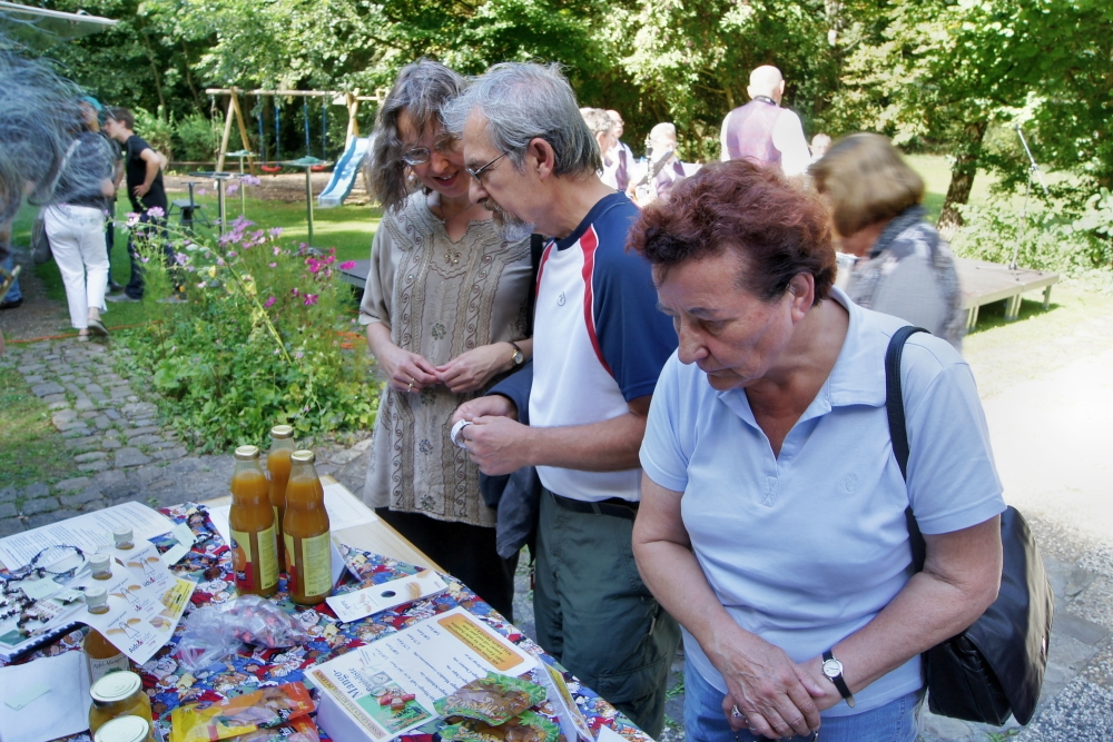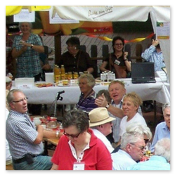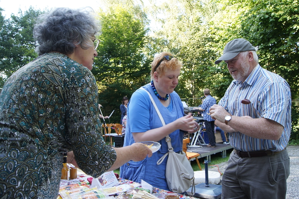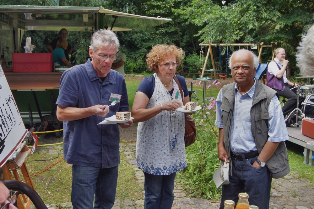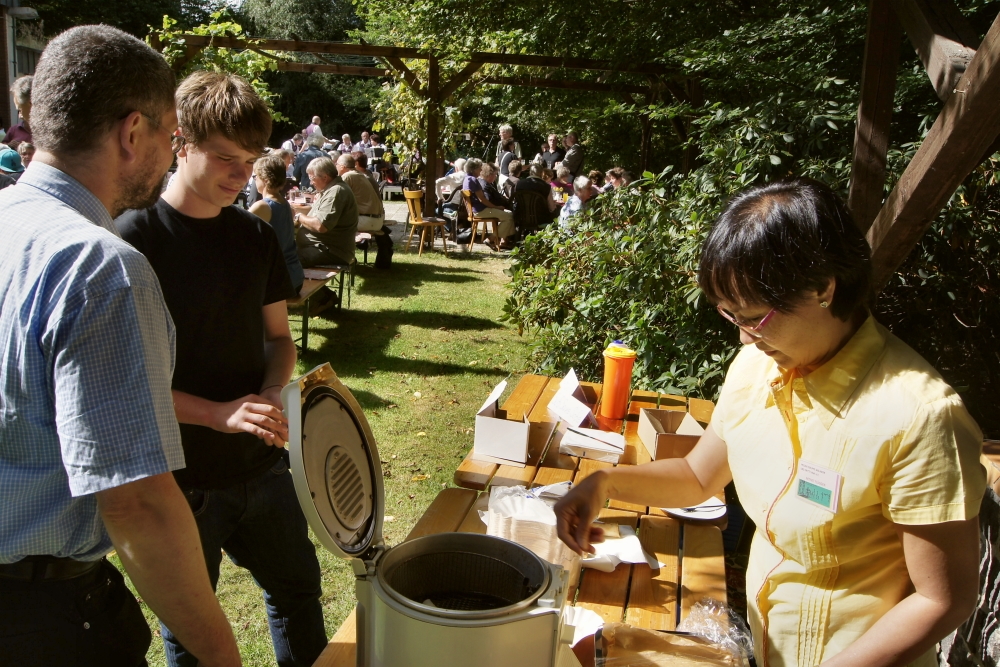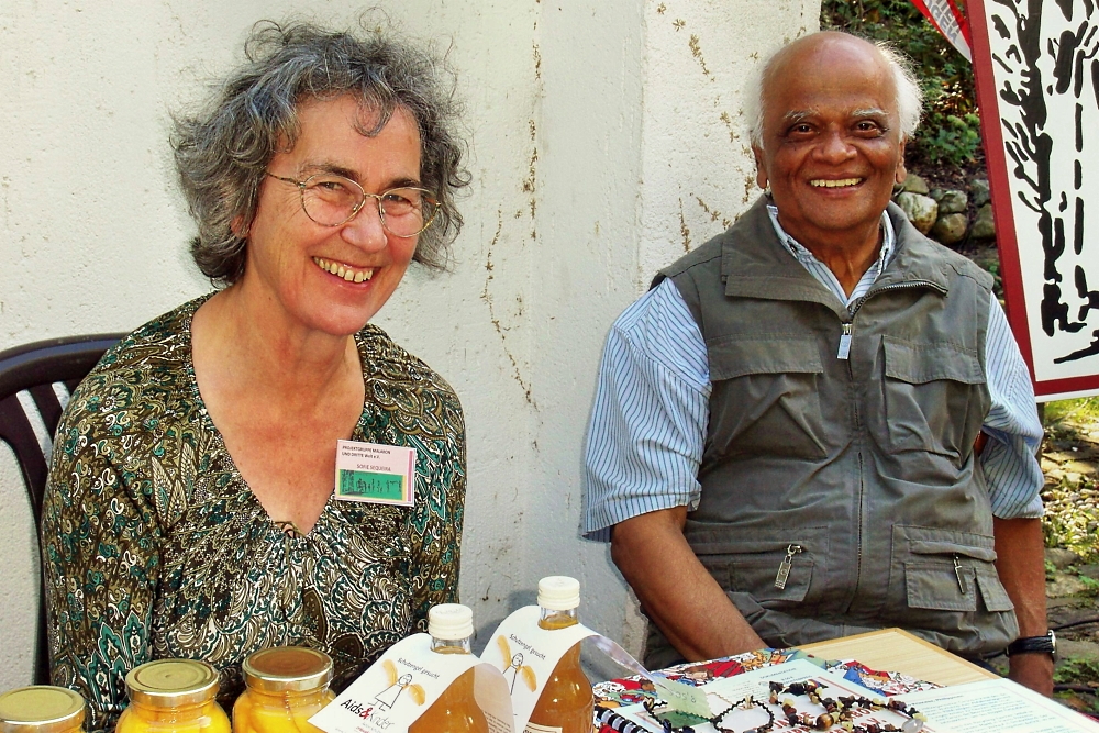 10.07.2011Herzlich aufgenommen!Wie schon 2007 hatten wir auch in diesem Jahr die Gelegenheit, uns am Pfarrfest St. Petrus Baesweiler mit einem eigenen Stand beteili-gen zu dürfen.Wir hatten das Gefühl, auf dieser Veranstaltung, die trotz des teil-weise etwas durchwachsenen Wetters hervorragend gut besucht war, herzlich willkommen zu sein.Netnet und Franz Flüggen, der auch maßgeblich an der Planung und Durchführung des Pfarrfestes beteiligt war, Norbert und Angelika Iskam, Herbert und Marianne Schmerz, Jürgen Dreschers, Alice Steinberg, Sofie Sequeira sowie Marlies und Dieter Wefers vertraten unsere Gruppe; Information über unsere Projekte und der Verkauf von Mango-Produkten, von philippinischen Kooperativen erzeugt, standen im Mittelpunkt unserer Aktion.Ein besonders Lob gilt dem Engagement von Netnet, die in „Heimar-beit“ 160 (!) Frühlingsrollen nach philippinischer Art einschließlich süßsaurer und scharfer Soße hergestellt hatte, die auf dem Fest - frisch frittiert - den Besuchern angeboten werden konnten. Ein wahrer Genuss!Als besondere Wertschätzung möchten wir hervorheben, dass der Baesweiler Bürgermeister Dr. Willi Linkens unserem Stand einen kurzen Besuch abstattete und sich über unsere Arbeit informieren ließ. Das lässt die Hoffnung aufkeimen, dass diese Veranstaltung nicht unsere letzte in Baesweiler war. Auch an eine Intensivierung der Sponsorenwerbung sollte gedacht werden.