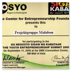 "Mary Grace war in unserem Straßenkinderprojekt von 2008 bis 2010. Sie hat gerade ihr erstes Schuljahr als Klassenbeste ("grade one 1st honors at the government school") abgeschlossen. Wir sehen die Früchte unserer gemeinsa-men Arbeit. Mary hätte sich nicht so auszeichnen können, wenn sie in unserem Programm nicht die grundlegenden Dinge gelernt hätte. Der Kindergartenbesuch ist sehr teuer. Ihr Vater arbeitet als Zimmermann, ihr Mutter ist Hausfrau und sie hat sieben Geschwister."