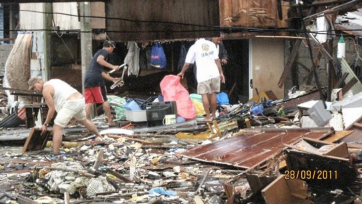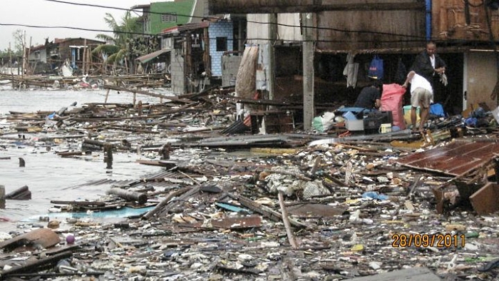 Father Boy schreibt am 30.Sept.2011Terrible typhoon hit Manila. My parish flood reached 4 ft. coz river wall gave way. Dampalit had 5 ft level flood with waves due to strong winds. 3 died, Homes washed out. Aisa (our graduate who is now employed in my school) told me this morning that only two windows are left and their house gone. Will update you with the details very soon regarding plights of our scholars.Fhamie Francisco (former scholar):Hi Herbert! Most houses are heavily damaged..it's so sad to see people suffer from this calami-ty..people from Dampalit also need kind hearts, people who will extend their helping hands.( I'm from Dampalit, was one of the scholars in 1990's)Dina Santos (Sister Dina):Everything seems so normal in Metro Manila, but the people in Malabon, Navotas and Bulacan are still suffering from high waters! Inside my room is waist deep and up to the knees in the kitchen and garage! Please pray for all the people still suffering! The broken dikes, high tide and water coming from the dams in Bulacan is causing it.Arman Cruz:Dear Sir Herbert & To Our Benefactors in Germany: Brgy. Dampalit, Malabon City, the home of most of Scholars was heavily damaged by Typhoon Pedring, many houses of scholars were washed out and heavily damaged by the typhoon wrath. Flashfloods was experienced that even killed children in the area. Most of our books were also damaged by calamity.Most of the scholars did not save anything even clothes and important things in their house. This time no electricity in the area and communica-tion is so hard. I just go to another town to charge my phone and use the net to communicate. Please help continue praying for all who are fully affected by this calamity.