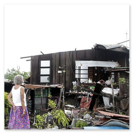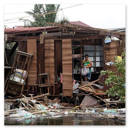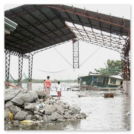 Heute haben uns die ersten Photos von den Zerstörun-gen durch den Taifun "Nesat" in Dampalit, Mala-bon, von einer unserer frü-heren Scholars erreicht.