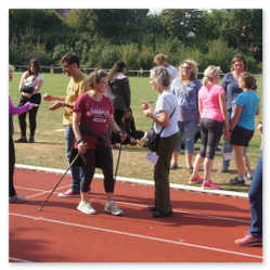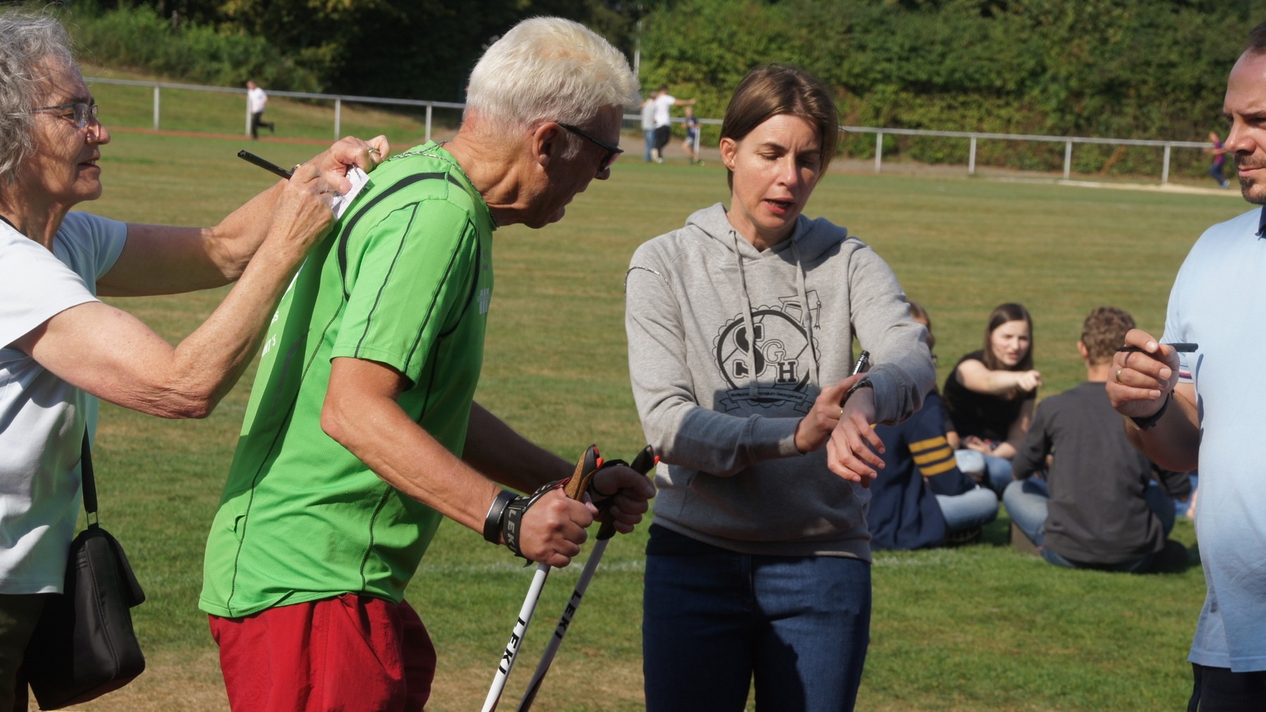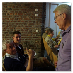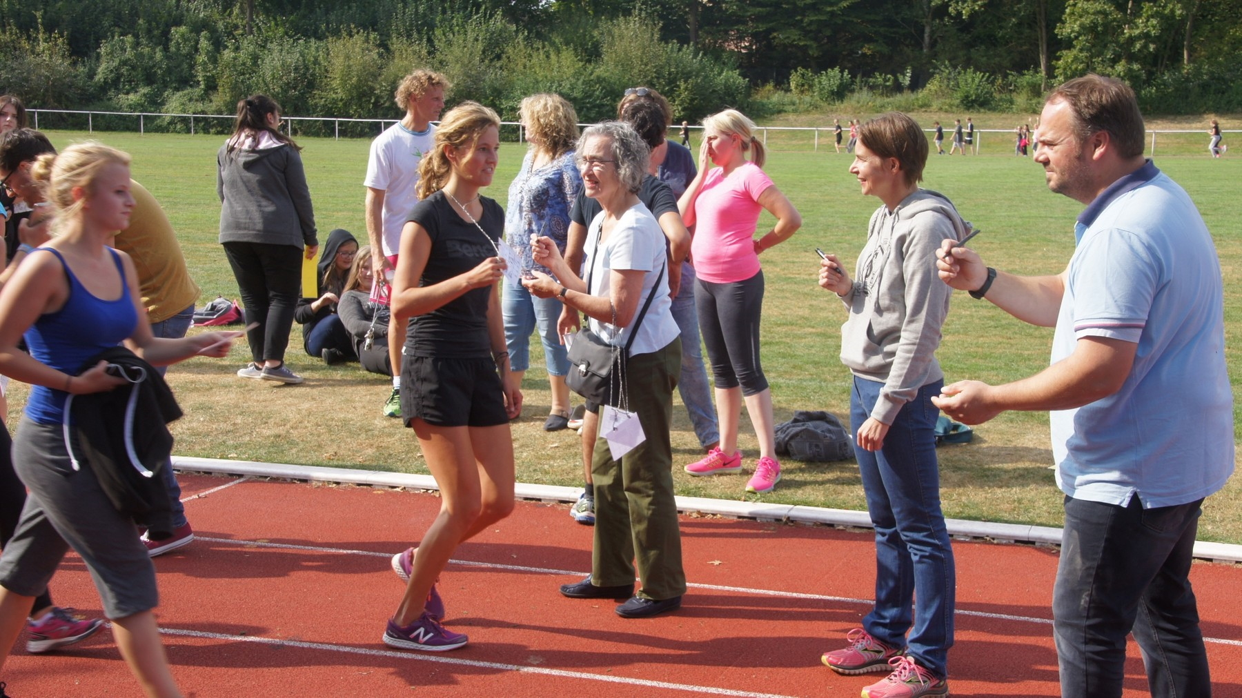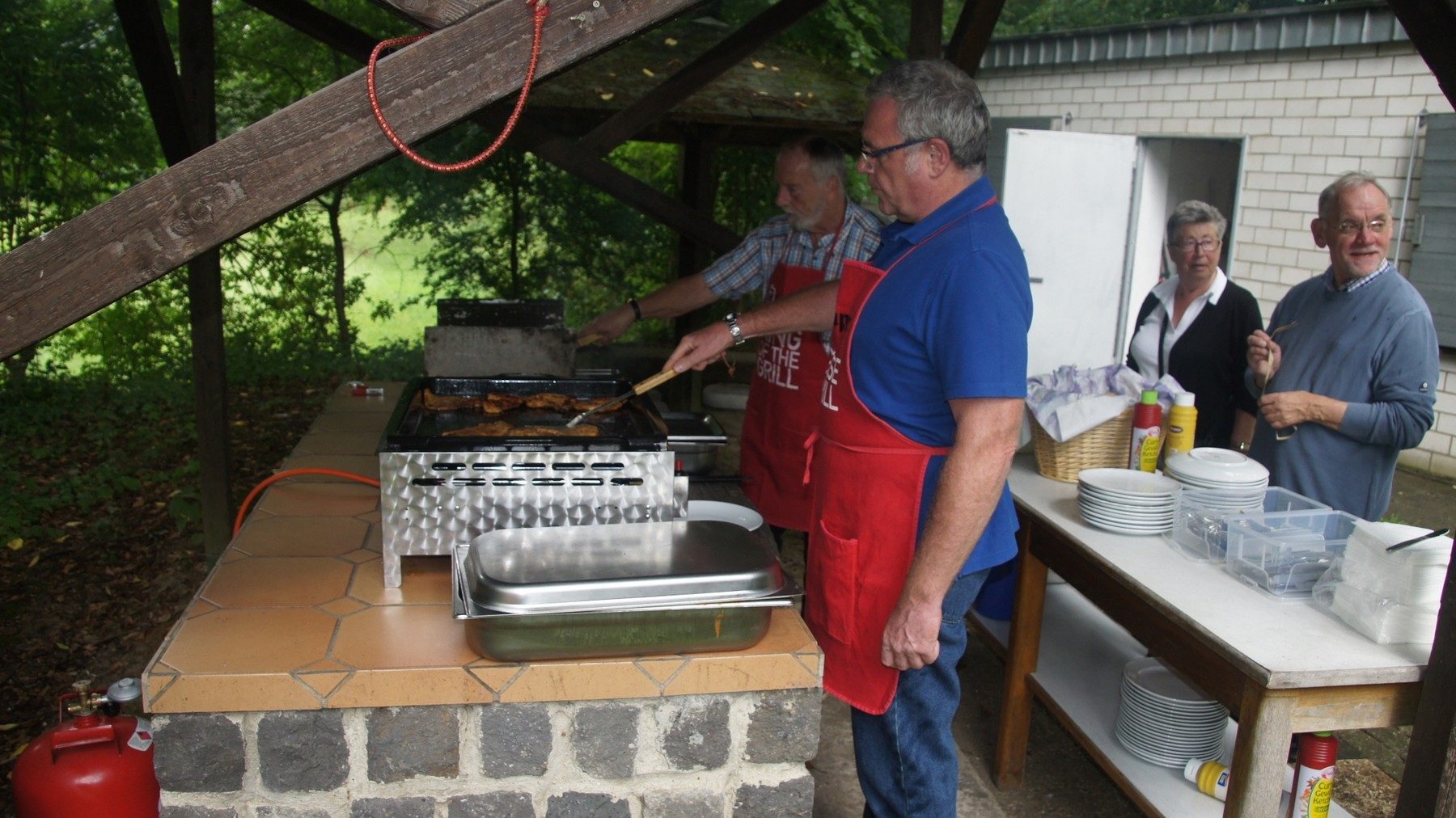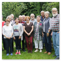 Auf der außerordentlichen Mitgliederver-sammlung wurde Bernd Esser am 29.06.2016 zum neuen Schatzmeister gewählt.Das rechte Bild zeigt die aktiven Mitglieder der Projektgruppe mit der alten Schatzmeisterin Angelika (3.v.l.) und dem neuen Schatzmeister Bernd (5.v.r.).(Es fehlen Marlies Wefers und Marianne Schmerz)
