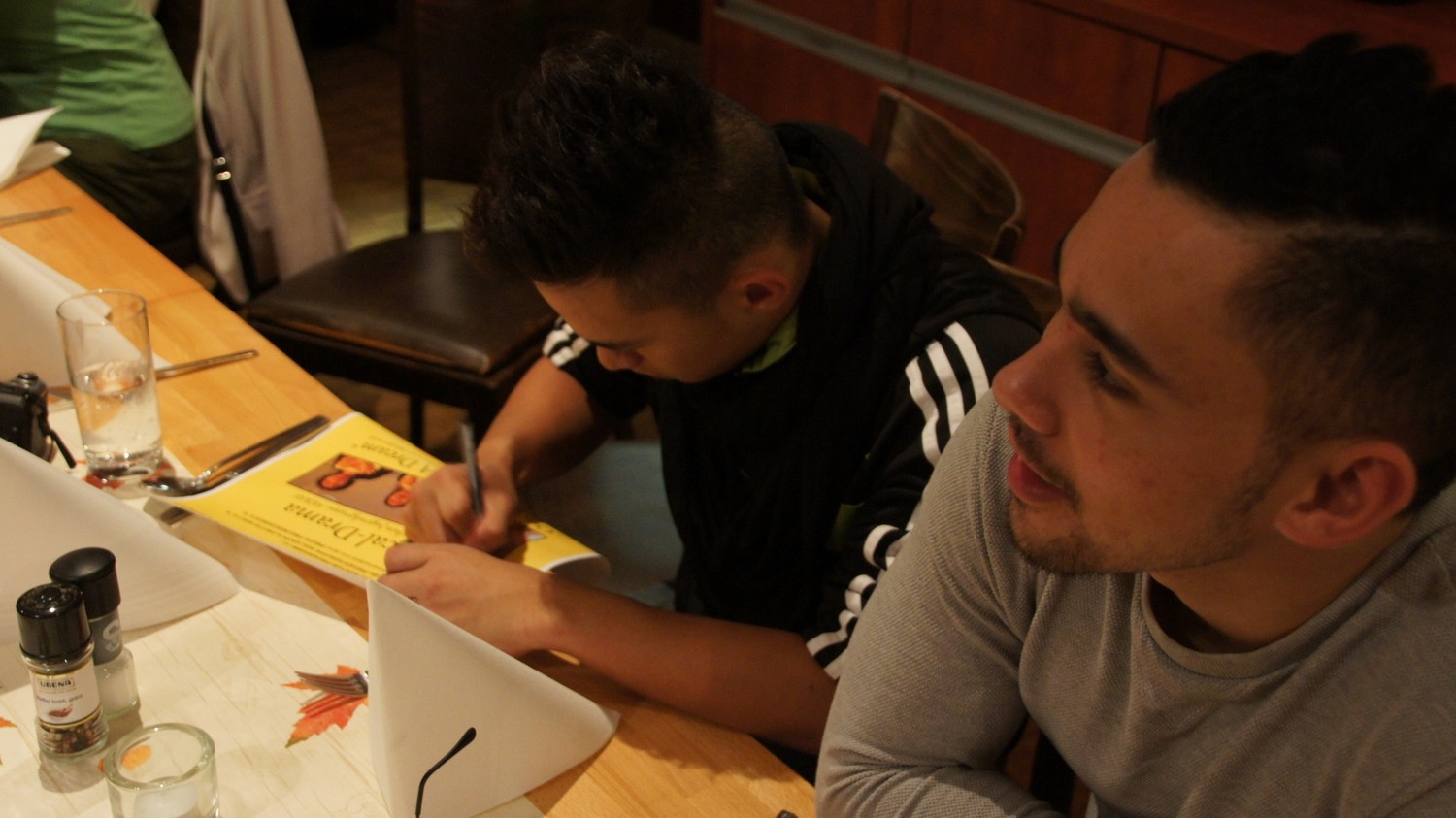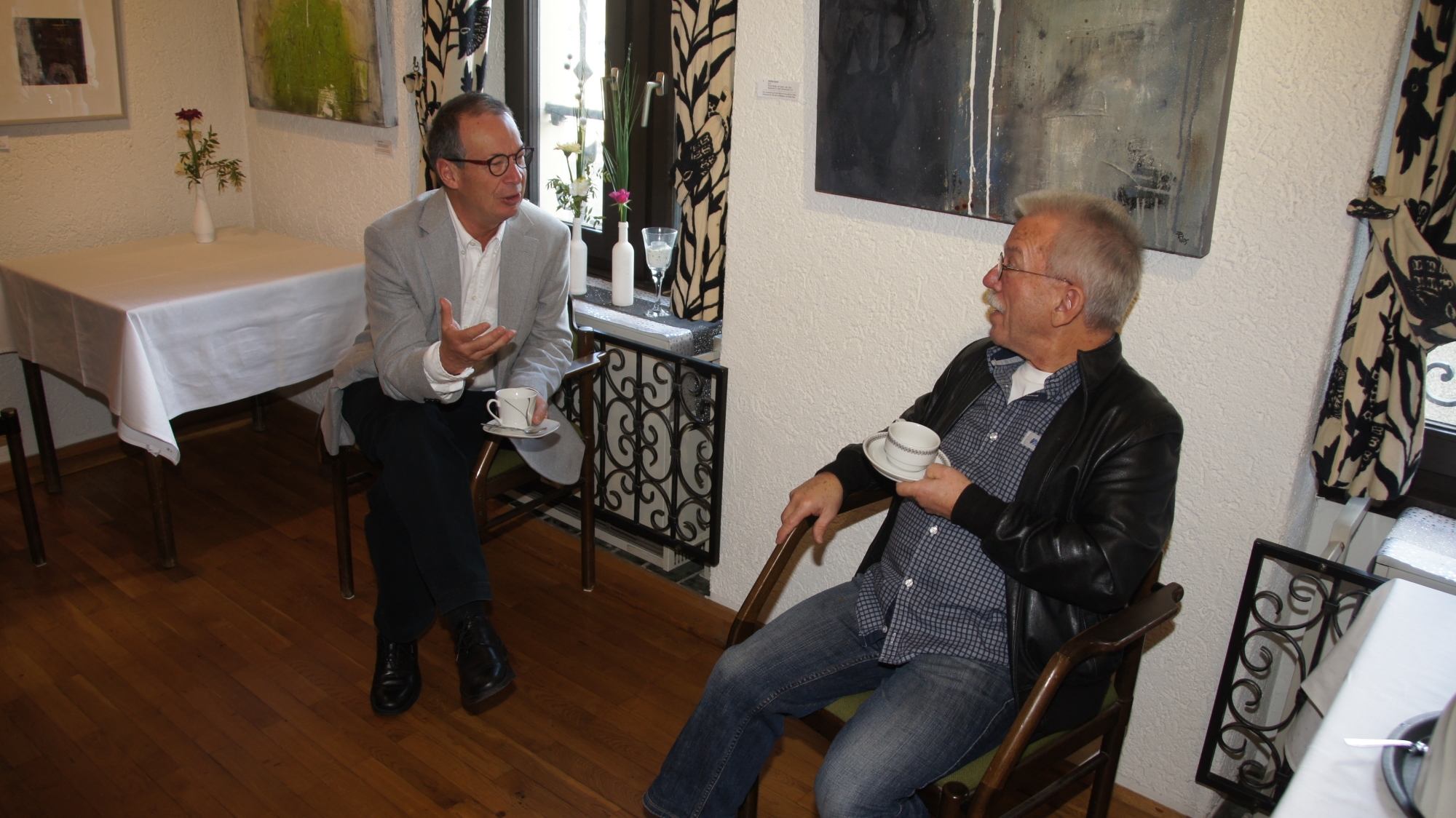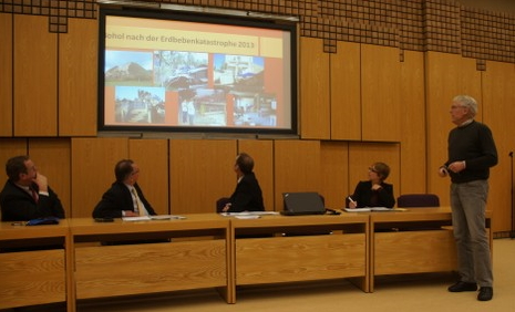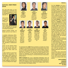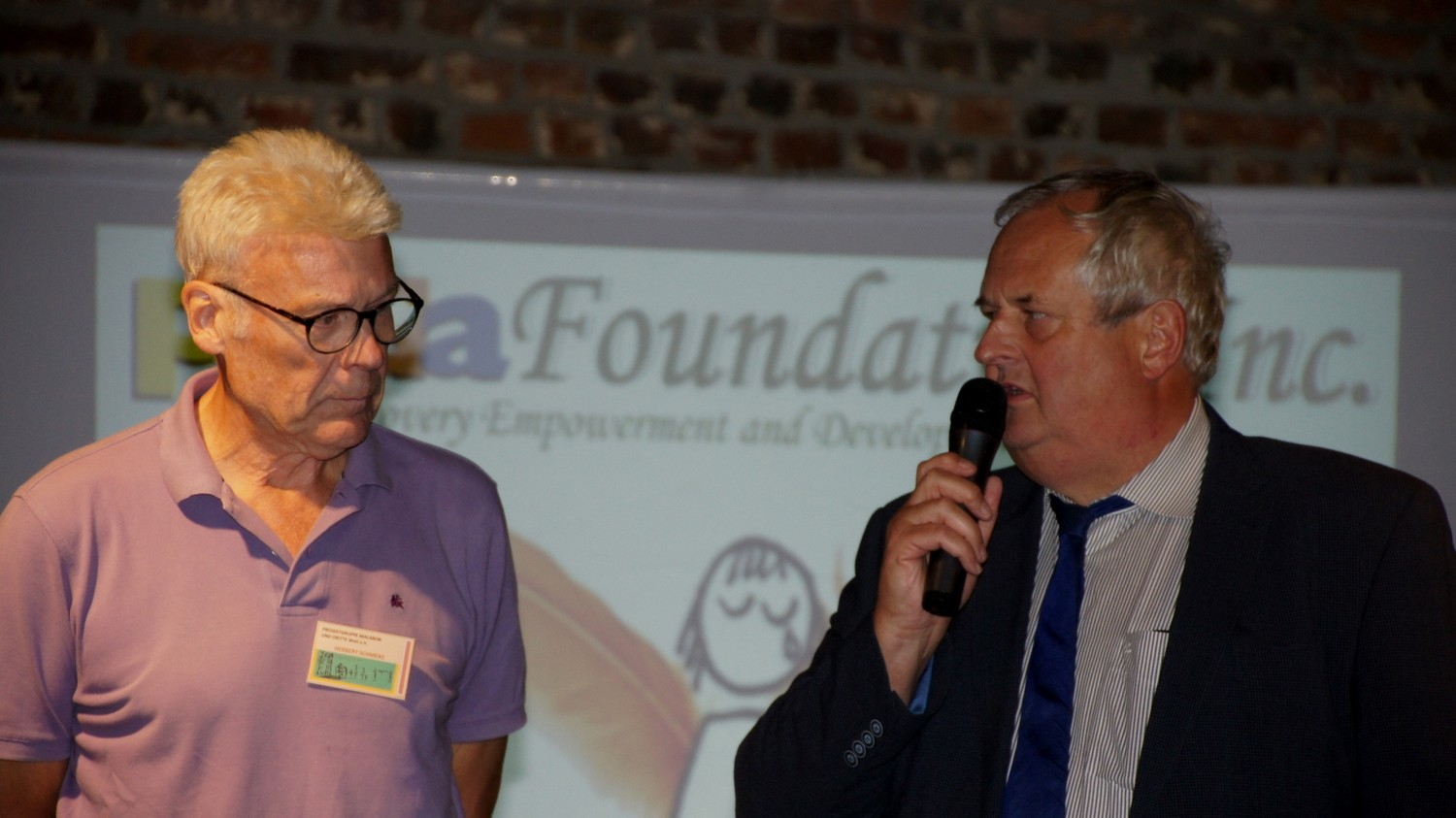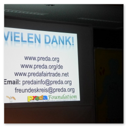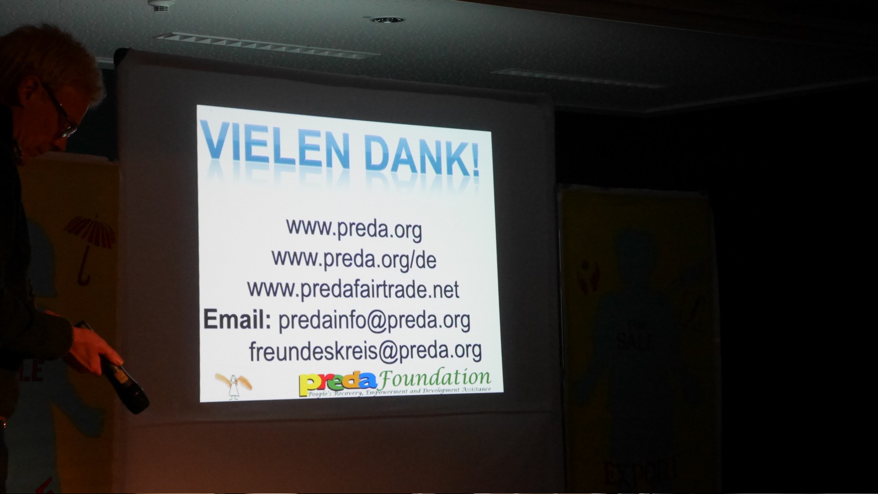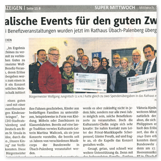 25-Jähriges im Mehrgenerationenhaus im alten Bahnhof Palenberg feiern. Unter den geladenen Gästen u.a. der Übach-Palenberger Bürgermeister W. Jungnitsch. Wir waren mit einer Infowand und dem Ver-kaufsstand für fair gehandelte Mangoprodukte vertreten. Als Hauptattraktion konnten wir allerdings philippinische Gesangseinlagen von Jasmine und Netnet Flüggen beisteuern sowie den Verkauf von Früh-lingsrollen auf philippinische Art, hergestellt von Netnet. Beides kam bei den überwiegend älteren Mit-gliedern der Kolpingfamilie offensichtlich sehr gut an! Bei Kaffee und reichlich leckerem Kuchen ergaben sich an den Tischen viele interessante Gesprächsrunden zwischen uns, als da waren Sofie, Franz, Netnet und Jasmin, Norbert Iskam, Herbert und Marianne, Alice, Marlies und Dieter, und den Mitgliedern der Kolpingfamilie. Längst verschüttet geglaubte Ereignisse, an denen sowohl Mitglieder der Projektgruppe als auch der Kolpingfamilie beteiligt waren, wurden zu neuem Leben erweckt. Wir danken der Kolpingfamilie für ihre Einladung!Tags darauf fanden wir (Herbert und Marianne, Hedi, Dieter) uns im Rathaus Übach-Palenberg ein. Rückblickend schaute Bürgermeister W. Jungnitsch noch einmal auf den am Tag zuvor erfolgten Besuch bei der Kolpingfamilie, nicht ohne darauf hinzuweisen, dass es zwischen der Arbeit der Projektgruppe und der der Kolpingfamilie nicht zu übersehende Parallelen gäbe. Dann folgte der eigentliche Anlass des Besu-ches: Die Scheckübergabe zum im Herbst erfolgten Benefizkonzert der Privat-Musikkapelle Scherpenseel in Zusammenwirken mit der Fanfare Victoria Rimburg zugunsten der Projektgruppe; Erlös: 1.640,41€!In Anwesenheit von Vertretern der beiden Musikgruppen konnten wir uns umgehend für dieses wunder-bare Ergebnis bedanken. Auch der Stadt Übach-Palenberg als Veranstalter sei an dieser Stelle noch ein-mal gedankt. Weitere Zusammenarbeit, u.U. auch in den benachbarten Niederlanden, nicht ausgeschlos-sen.Fernerhin wurde auch Thomas Gottschalk (nein, nicht der mit den blonden Locken und bunten Jacken) für sein Konzert auf Schloss Zweibrüggen zugunsten der Aktion "Unsere Kinder" mit einem Scheck bedacht. Beide, Th. Gottschalk und H. Schmerz, wurde Gelegenheit gegeben, über ihre Arbeit zu berichten. Weiterhin anwesend waren zwei hochrangige Vertreter der Bundeswehr, die nicht nur wiederholt Benefiz-Konzerte des Bundeswehr-Musikkorps in Übach-Palenberg mit verantworteten, sondern auch lebhaftes Interesse an der Arbeit der Projektgruppe erkennen ließen. Sogleich wurden Kontakte geknüpft, die darauf hinausliefen, vielleicht schon im kommenden Jahr unser Projekt bei geeigneter Gelegenheit (evtl. Tag der Offenen Tür) präsentieren zu können; besonderes Interesse wurde an einen Auftritt der PREDA-AKBAY-Theatergruppe, ggflls in englischer Sprache, bekundet. Mal sehen! Gleich drei Pressevertreter ließen die Hoffnung auf eine umfassende Darstellung in den regionalen Medien aufkommen.