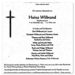 gestern zu später Stunde er-reichte uns die Nachricht vom Tod von Heinz Wilbrand; Heinz ist am 12. März im Alter von 85 Jahren verstorben; er war Gründungsmitglied unserer Projektgruppe und hat ihr mehr als ein Vierteljahrhun-dert lang die Treue gehalten. Auf den Veranstaltungen der Projektgruppe - zuletzt noch aus Anlass der Mitgliederver-sammlung am 9. Dezember 2015 - war Heinz, sofern sein Gesundheitszustand dies zuließ, ein interessierter und gern gesehener Teilnehmer.Wir sind traurig und werden ihn gerne als Freund und Mit-glied der Projektgruppe in unserer Erinnerung behalten.