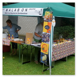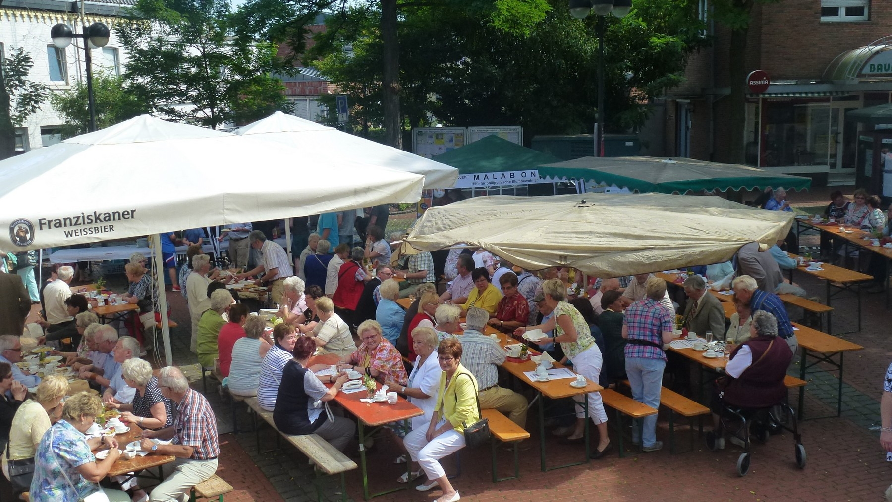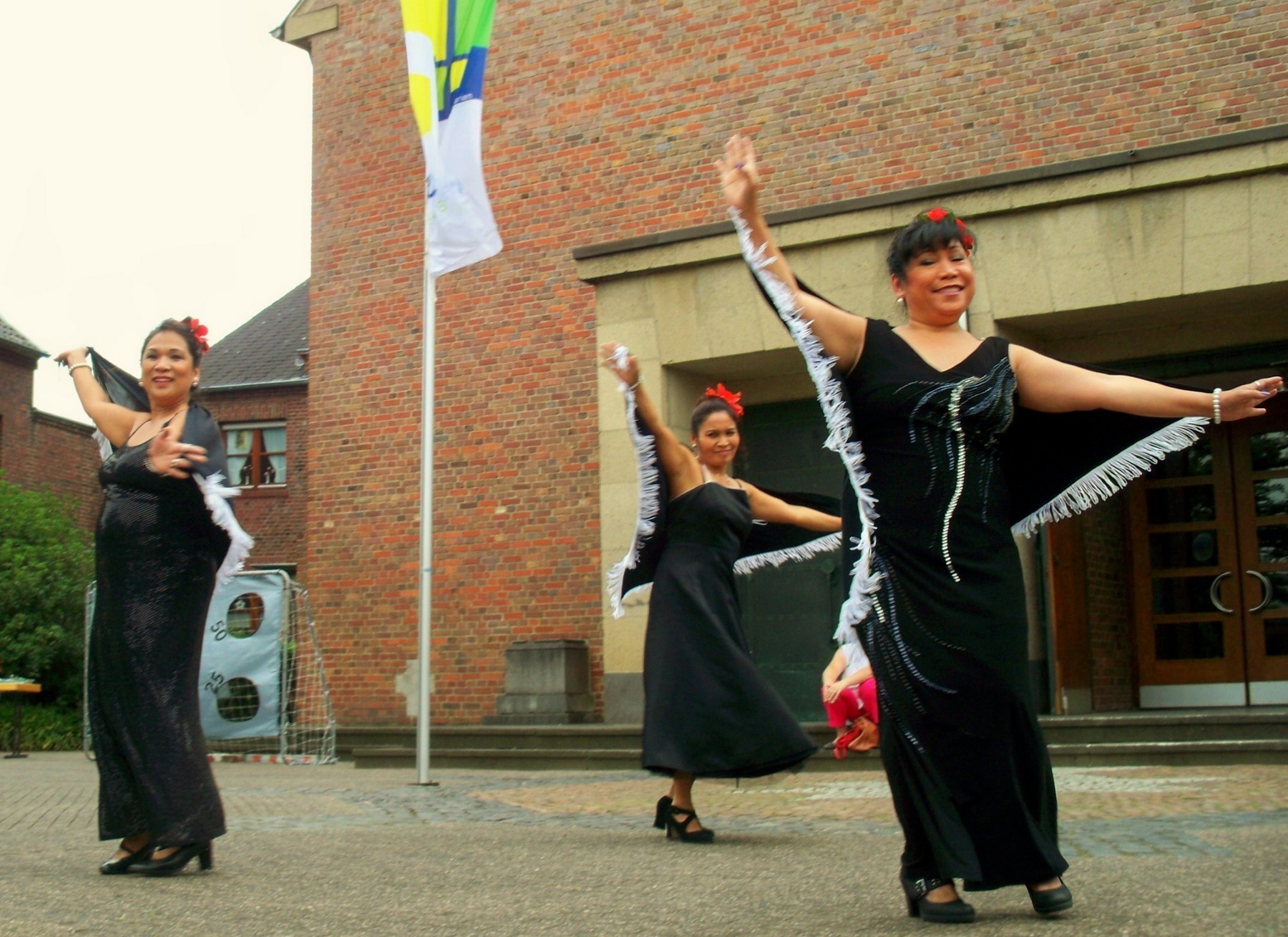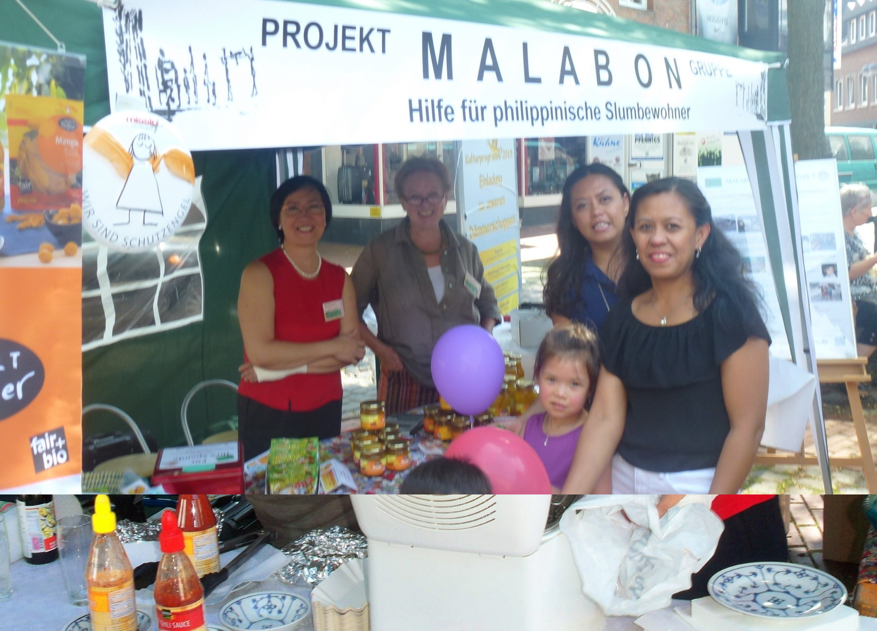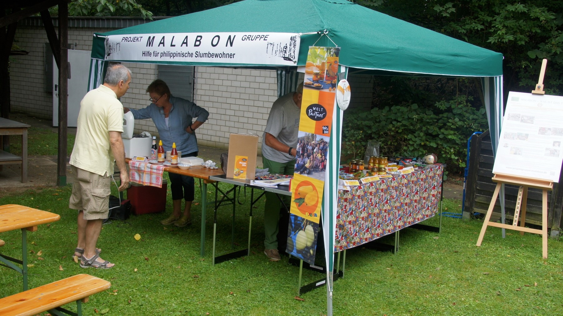 Ende August beim Pfarrfest in St. Petrus in Baesweiler meinte es der Wettergott dann wieder gut mit uns. Zahlreiche Besucher, un-ter ihnen Bürgermeister Dr. Willi Linkens, lauschten den Musikbei-trägen, labten sich an Kuchen und gegrillten Speisen und besuchten unseren Stand. Sie informierten sich nicht nur über unsere Projekte, sondern kauften auch die angebotenen Mango-Produkte aus dem fairen Handel von PREDA und Kunstgewerbe aus den Philippinen.Eine mehr als gelungene und für uns erfolgreiche Veranstaltung, zu der wir auch in Form von Musik mit Jasmine Gonzaga und dem Duo Udo S. (Lieder auf Öcher Platt) und mit philippinischen Tänzen beitragen konnten.