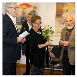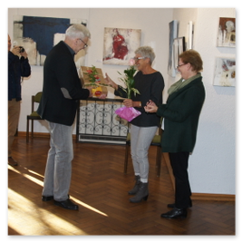 Nach dem viel zu frühen Tod von Friedhelm Schrader im Jahr 1999 und der kommissarischen Übernahme des wohl wichtigsten Amtes im Vorstand der Projektgruppe durch Sofie Sequeira hat Angelika Koh-nen uns aus der sog. Bredouille geholfen und als Schatzmeisterin 17 Jahre erfolgreich und engagiert die Finanzen der Projektgruppe ver-waltet. Nie gab es in dieser Zeit Anlass zu Beanstandungen. "Umso mehr erschraken wir," so der Vorsitzende Herbert Schmerz, " als du vor geraumer Zeit angekündigt hast, das Amt aufgeben zu wollen, weil dir die Belastung angesichts deiner übrigen, weitreichenden Ver-pflichtungen zu groß werde." Er bedankte sich ganz herzlich für ihre Arbeit für die Projektgruppe.Als kleine Anerkennung überreichte er ihr im Namen der Pro-jektgruppe ein kleines Geschenk, einen Gruß aus den Philippinen vom Fair Trade Partner PREDA mit Mango-Produkten. Damit verknüpfte er den Wunsch, dass Angelika der Projektgruppe auch als „einfaches“ Mitglied treu bleibt.