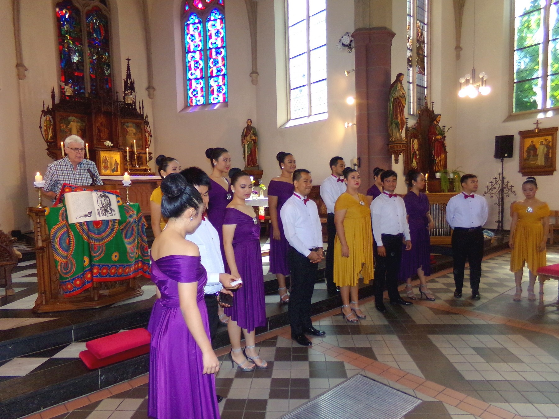 Unser Schriftführer Dieter Wefers schreibt zum Konzert der "Singing Ambassadors":Liebe Malabonfreunde,obwohl die Ankündigung in der Presse (unserem Engagement zum Trotz) hundsmiserabel war, obwohl die Sommerferien schon begonnen hatten, obwohl die Temperaturen bei herrlichem Sommerwetter in Richtung 30°C tendierten, die Kirche St. Josef in Herzogenrath-Straß war wider unserer Befürchtung wirklich gut gefüllt.Der Sonntagsgottesdienst, gehalten von Pfarrer Hermann van den Berg („Bobby“), wies als Besonderheit auf, dass statt einer Predigt ein „Interview“ mit Herbert zur Geschichte, den Zielen und der Zukunft unserer Pro-jektgruppe geführt wurde. Damit wurde den Gottesdienstbesuchern, die uns noch nicht (so gut) kannten, deutlich, warum wir neben MISEREOR bei der Veranstaltung auftraten.Die zweite Besonderheit: Der Chor "The University of the Philippines Singing Ambassadors (UPSA)" trat als Mitgestalter des Gottesdienstes auf.Nach Beendigung desselben traten nur ganz wenige Besucher den Heimweg an. Die, die blieben, hatten Gelegenheit, noch gut eine weitere Stunde dem Chor zu lauschen. Und das war ein phantastisches, unver-gessliches Erlebnis! Auf allerhöchstem Niveau wurde ein Reigen unterschiedlichster Gesänge dargeboten – international Bekanntes bis zu hier selten oder nie gehörten philippinischen Weisen. Hin- und mitreißend das Engagement und die ansteckende Spielfreude der Protagonisten! Standing Ovations und die Bitte nach Zuga-ben konnten da nicht ausbleiben.Zum Abschluss mischten sich die Sängerinnen und Sänger unter das begeisterte Publikum und verabschiedeten sich von jedem Einzelnen, mit Worten, Freundschaftsgesten und Umarmungen, dankten sogar den Zuhörern, die ja eher für dieses besondere Sonntagsgeschenk zu Dank verpflichtet waren! Wahre Botschafter ihres Landes!
