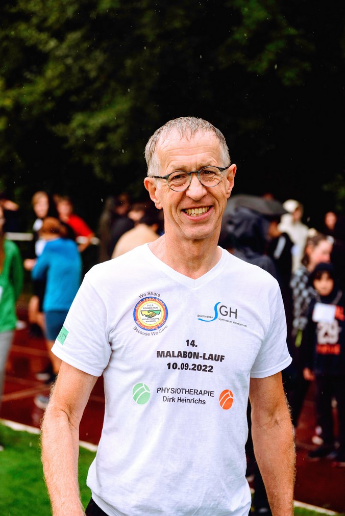 10.09.2022: 14. Malabonlauf am Städt. Gymnasium Herzogenrath SGHIm strömenden Regen gingen fast pünktlich um 14.00 Uhr anlässlich des Schulfestes am Städt. Gymna-sium Herzogenrath 575 SchülerInnen, LehrerInnen, Eltern sowie Gäste an den Start zum traditio-nellen Malabonlauf. Es galt in einer Stunde entweder die Laufstrecke von 2,5 km oder die Walking Runde von 1,5 km zu bewältigen.Noch sind nicht alle Sponsorengelder eingesammelt. Aber schon jetzt konnte die SV des SGH im Rahmen eines Informationsabend für interessierte Eltern der neuen Fünft-Klässler einen Scheck über 21.000 EU an unsere Mitglieder Vera Vohn (stellv. Schulleiterin) und Herbert überreichen. Sie werden unsere Arbeit in den Slums von Malabon und Tondo und auf der Insel Bohol in großartiger Weise unterstützen.Was für ein tolles Ergebnis. Schon jetzt ein großes Dankeschön an alle TeilnehmerInnen und alle SponsorenInnen.