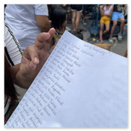Die Dame neben mir ist die neue Outreach-Koordinatorin. Angelita auf Empfehlung von Loida. Angelita ist eine unserer Elternkoordinatoren.