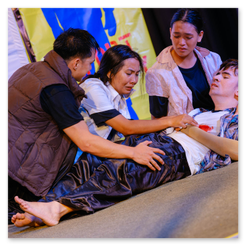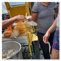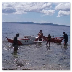 Diejenigen, die eine Angelrute benutzen, brauchen ein Fischerboot, das sie zu den Gebieten bringt, in denen es viel Fisch gibt. Wie dieser "Waray" benutzt er ein Netz. Sie haben unterschiedliche Methoden, um Fische zu fangen, einige benutzen einen Speer.Unsere Gruppenmitglieder sind begeisterte Fischer. Die Gruppe hat klein angefangen und hilft nicht nur den Mitgliedern, sondern auch anderen außerhalb unserer Gruppe. Mit Gottes Hilfe können wir anderen helfen. Bei Monsun und Taifunen können wir uns an Rettungsaktionen beteiligen. Andere würden es sich zweimal überlegen, ob sie uns um Hilfe bitten. Wir können Mitglieder einbeziehen, deren Eltern Fischer sind, so wie Mechaniker, deren Eltern Fischer sind. Mit der Hilfe, die wir erhalten, kann unser Erfolg anderen helfen. Wir können auch zum Lebensunterhalt der Familienmitglieder beitragen.Fr. Boy:Haben die Boote, die wir geschenkt haben, euch geholfen?Fischer:Auf jeden Fall! Wir benutzen sie, um Tintenfische zu fangen, wir benutzen sie, um die Netze auszufahren. Manche sind ein bisschen klein, aber wir nutzen sie so gut wir können.
