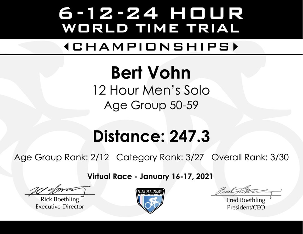 Zum 2. Mal nahm Bert an der virtuellen Weltmeisterschaft im Zeitfahren durch die Wüste Kaliforniens, diesmal über 6 Stunden, zugunsten unserer Straßenkinder teil.Wieder wurde er Weltmeister in seiner Altersklasse 50+.Wieder konnte er eine schöne Summe für seine und unsere Straßenkin-der erradeln.Höchste Anerkennung und Dank an dich Bert.