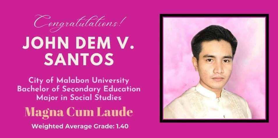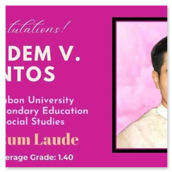 John Santos, diesjähriger Graduierter, hat sein Studium als Zweitbester mit "Magna cum Laude" abgeschlossen.Fr. Boy schreibt dazu: "We are proud of the scholars who despite poverty work their way to becoming professionals. We are proud of all of us partners who made this possible."