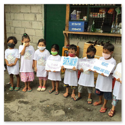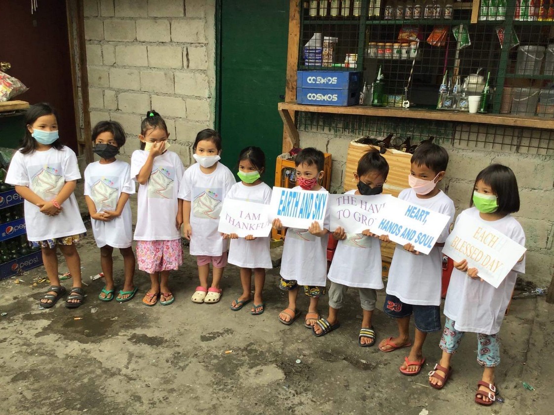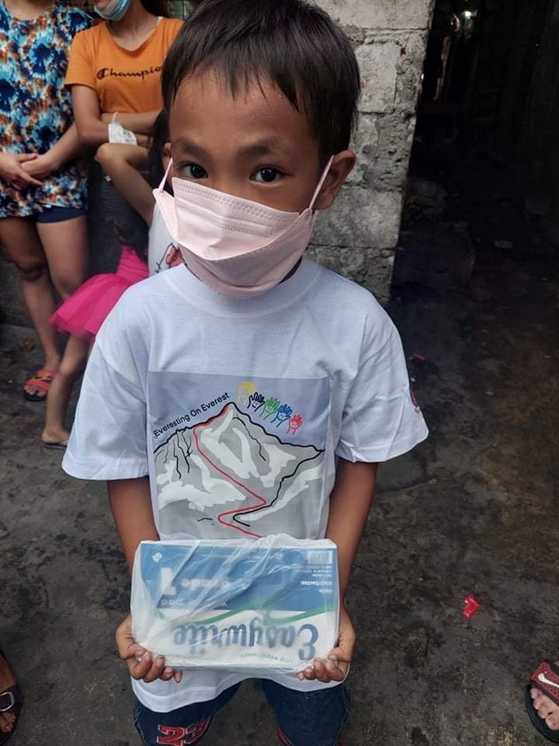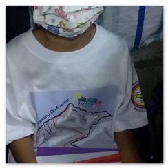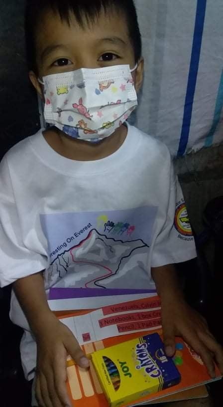 Good news is The public school teachers send the learning modules to their homes. We just need to provide the children to perform their tasks with crayons, pencils, writing pads and notebooks.Nach wie vor dürfen die Kinder ihre Hütten nicht verlassen.Fr. Boy und seinen Helferinnen gelang es aber, die von ihm gekauften T-Shirts, die mit Berts Logo "Everesting Everest" bedruckt sind, zu verteilen.Außerdem schickt er von einigen Kindern Fotos mit einer Grußbotschaft und ein Video mit einem Dankeslied.(Text und Video weiter unten)
