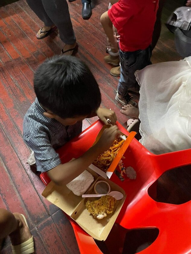 02.05.2022Nach seinem kurzen Krankenhausaufenthalt ist Fr. Boy wieder voller Elan und schickt uns neue Infos zusam-men mit Bildern und einem Video, die zeigen, dass die Versorgung der Straßenkinder mit einer warmen Mahl-zeit weitergeht.Er schreibt:Ich habe ein Treffen mit der Koordinatorin/den Helfern, um zu besprechen, welche Verbesserungen wir für die Betreuung der Straßenkinder vornehmen können. Unterricht in der Schule findet wieder statt. Wir werden sehen, wie es laufen wird. Wir werden euch auf dem Laufenden halten. Und Fotos schicken.Die Kinder werden weiterhin von den ehrenamtlichen Helfern verpflegt. Es gibt noch keine konkreten Angaben weder von der Schule noch aus Tondo, wie es weitergeht.Wir werden noch eine Lehrerin für die Betreuung der Straßenkinder am Wochenende finden.Wie gerne würde ich die Clinic (gemeint ist das Basisgesundheitshaus) weiterführen, aber wir konnten bisher keine/n freiwillige/n Ärztin/Arzt finden:Unsere Wochenendlehrerin Christina ist im 7. Monat schwanger. Sie sagt, dass sie die Wochenendbetreuung nach der Geburt wieder aufnehmen kann.Das heißt in 2 Monaten. Im Juli, so Gott will.