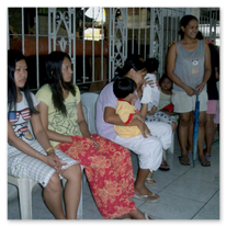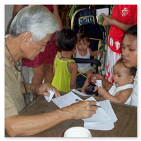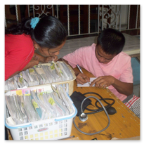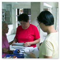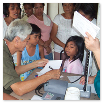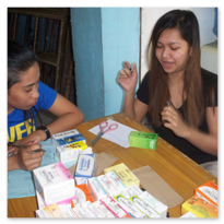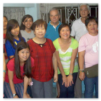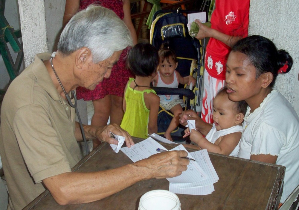 Er wird unterstützt durch die Koordinatorin Sis. Dina, die, obwohl sie nicht mehr in Malabon wohnt, jeden zweiten Sonntag die ein- bis zu zweistündige Fahrt auf sich nimmt, um in der 'Clinic' mit zu arbeiten. Sie wird unterstützt durch Lina Jao, Hebamme (2. Bild), ihre Stellvertreterin.Ferner gehören zur "Crew" Sis. Ellen (2. Bild, 6. von r.), seit über 20 Jahren die gute Seele der 'Clinic' und Assistentin von Dr. Fidel. (Sie verstarb leider in 2014.) Dazu kommen Scholars und einige Mütter aus dem Schulprojekt, die Medikamente ausgeben und Krankenblätter führen.