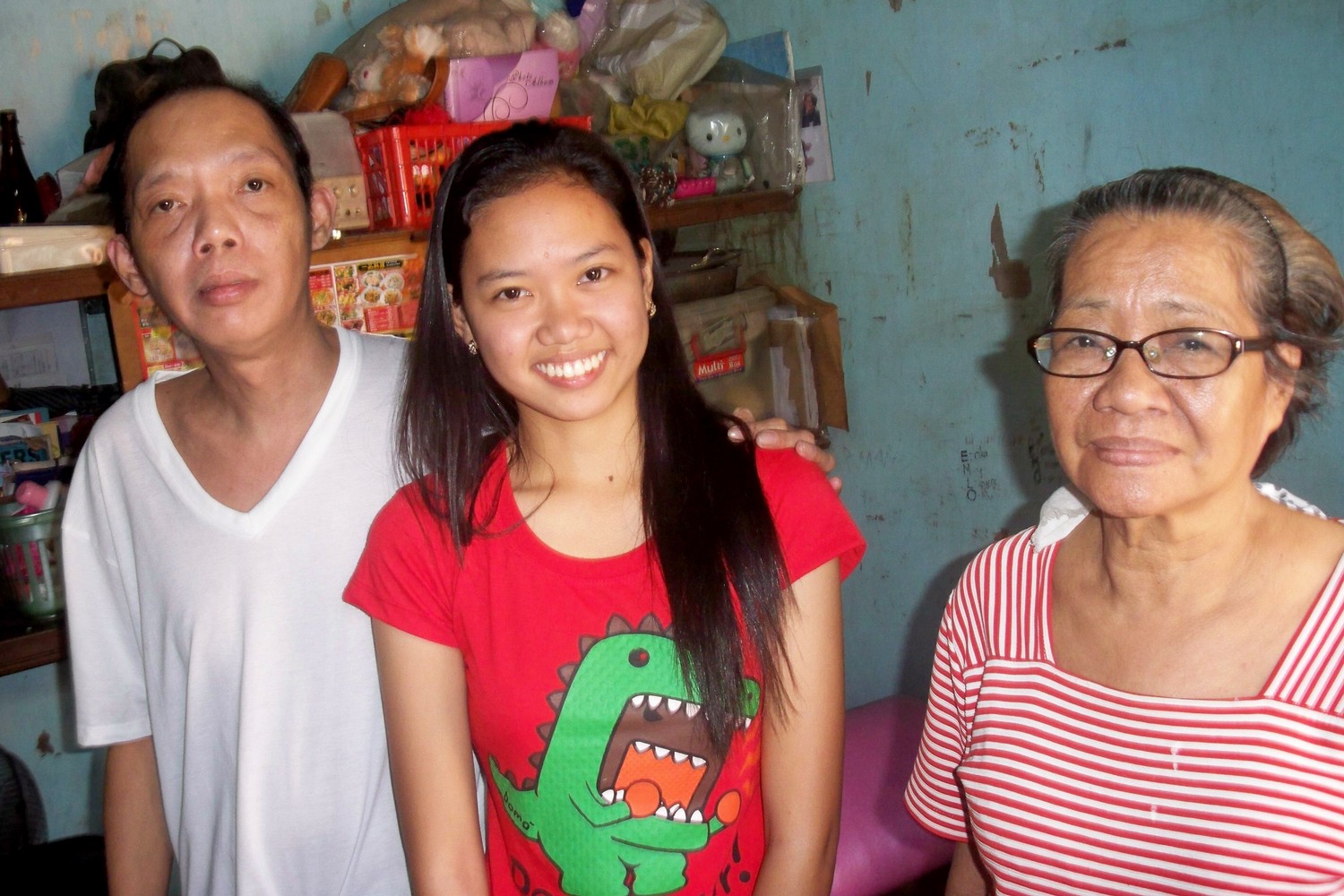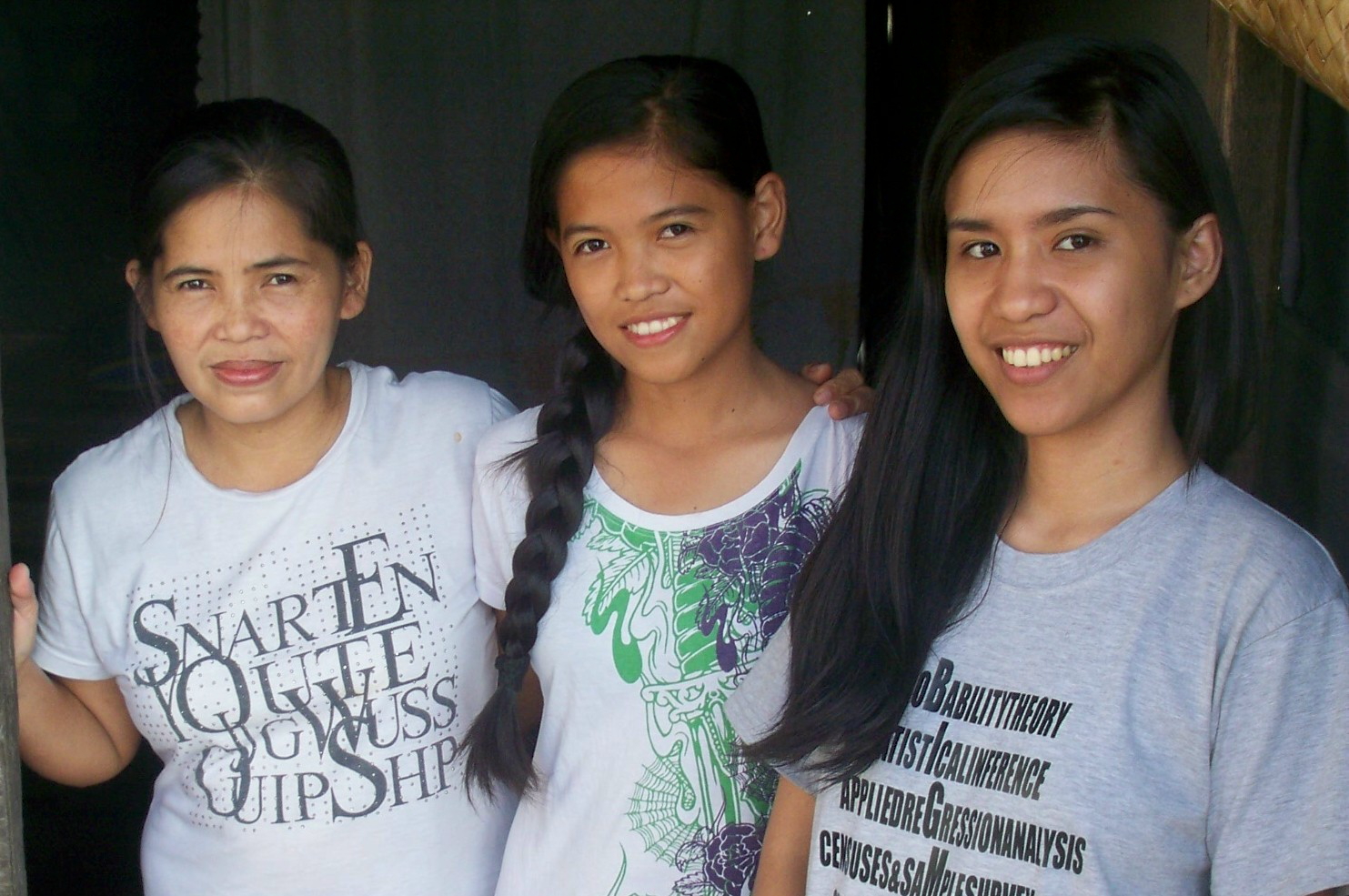 Nebenstehend Bilder einiger unserer gegenwärtigen Studierenden (Schuljahr 2015/2016) aus Malabon.Auf dem ersten Bild links Fr. Boy und rechts unser ehemaliger Schüler Prof. Arman Cruz, der für das Schulprojekt verantwortlich ist und daneben unser Mitglied Franz Flüggen, der zusammen mit seiner Frau Netnet alle zwei Jahre unsere Projekte besucht.Das Bild wurde aufgenommen in Armans Haus, das er für sich und seine Eltern im Slum von Malabon (Barangay Dampalit) gebaut hat.
