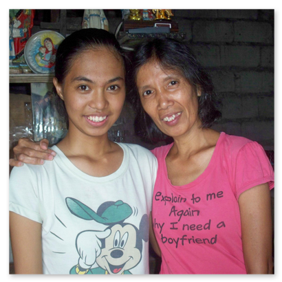 Zwei ehemalige Scholars(li.) Sandy Siason (Präsidentin der Scholars, z.Zt. Berufs-/Studienberaterin in Father Boys Schule)(re.) Jenny de Vera (Krankenschwester in derselben Schule)