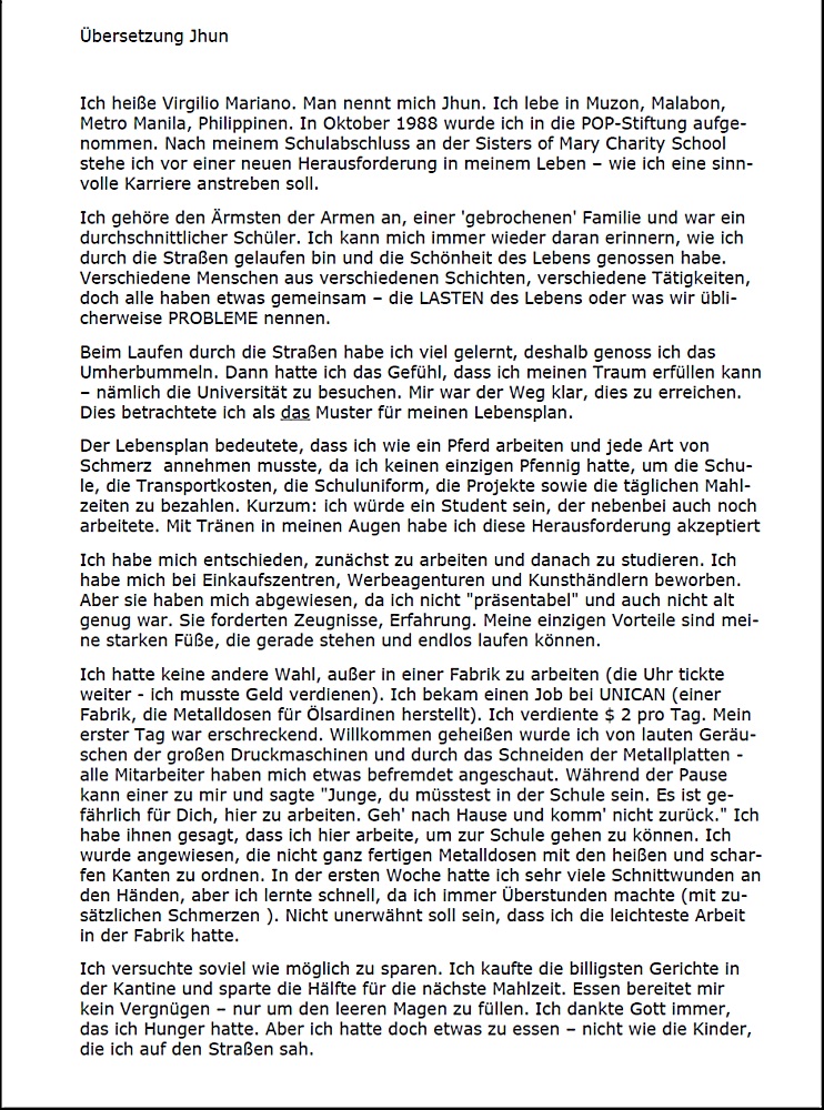 Lebenslauf:Jhun, ein Junge aus den Slums von Malabon(Original mit Übersetzung)