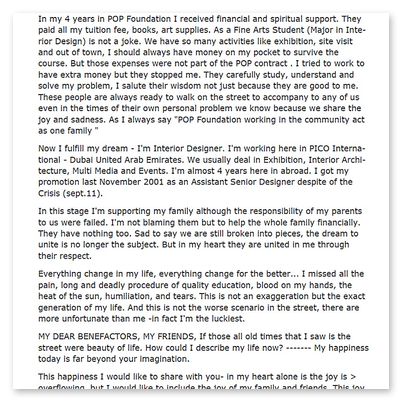Arman Cruz (re. mit einem Scholar) ist einer der höchst erfolgreichen Scholars. Er ist mit 28 Jahren der jüngste Professor der Philippinen, bewirbt sich z.Zt. um das Amt des "Kapitan" (eine Art von Ge-meindevorsteher) des Barangay Dampalit, Malabon. Außerdem ist er verantwortlich für das Schulprojekt und organisiert die Treffen der Ehemaligen.