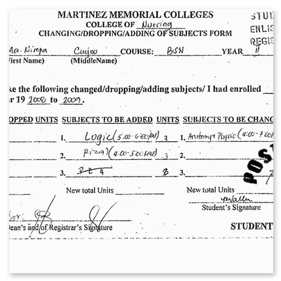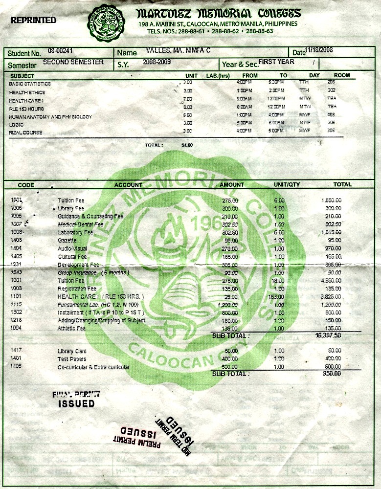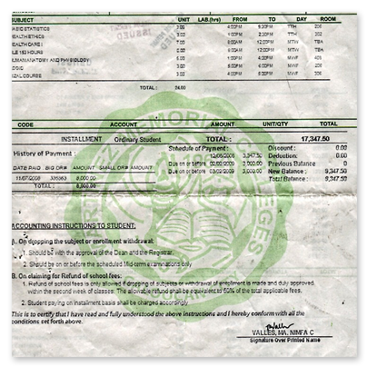 Das nebenstehende Beispiel der Quittungen einer Studentin mag vielleicht belegen, dass es nicht mög-lich ist, ohne hohe Verwaltungskosten in Kauf zu nehmen, von allen Studierenden jährlich die Quittun-gen einzufordern.Folgendes Verfahren ist auf den Philippinen üblich: