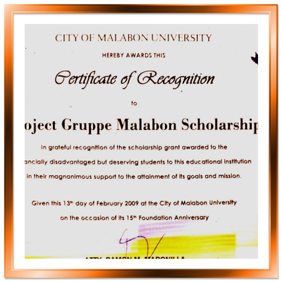 Anerkennung durch die Universität von Malabon für die Arbeit der Projektgruppe (2009)