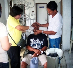 Dentist Maricel, hier mit Brother Lino, ist eine von zwei Zahnärztinnen, die in unserer 'Clinic' arbeiteten. Sie gehört bereits seit 1995 zum Team.Sie wartet noch immer sehnsüchtig darauf, dass sie einen "neuen" gebrauchten Zahnarztstuhl in Malabon findet. Der "alte" (ein Geschenk des Übach-Palen-berger Zahnarztes Dr. Fürkötter) war nach 20 Jahren intensiven Gebrauchs irreparabel beschädigt.