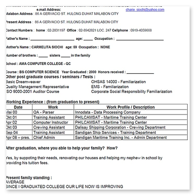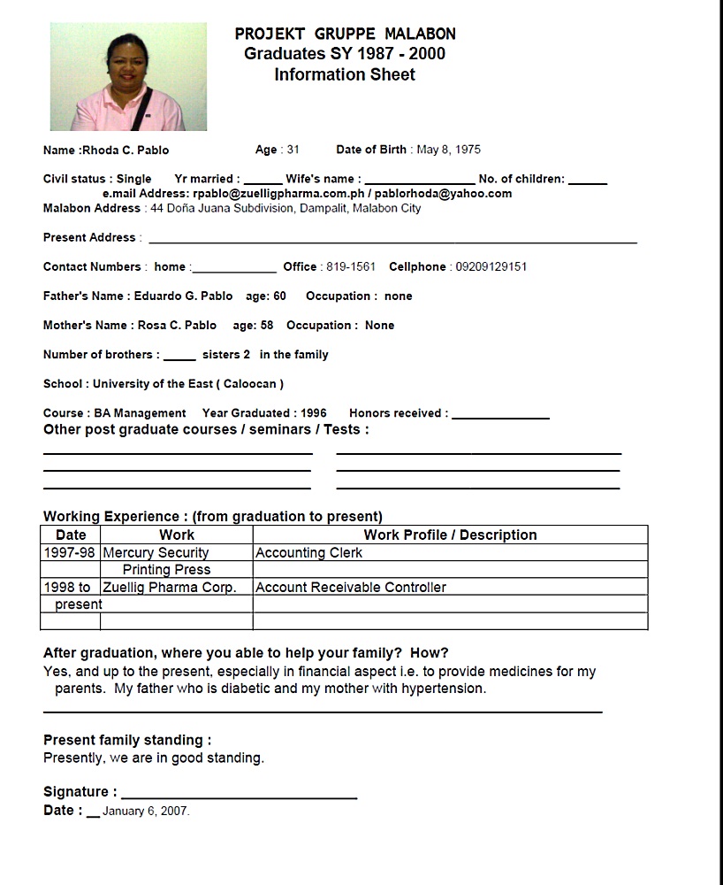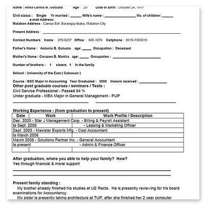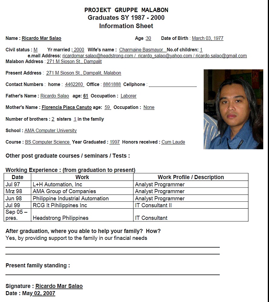 Arman Cruz (jetzt ehrenamtlich verantwortlich für die Betreuung der Scholars und Leiter der Eltern-abende).hier: Übersicht seiner Ausbildung, finanziert durch unsere Sponsorengelder.Arman ist jetzt Professor für Volkswirtschaft und bekommt eine Auszeichnung nach der anderen im gesamten asiatischen Raum.