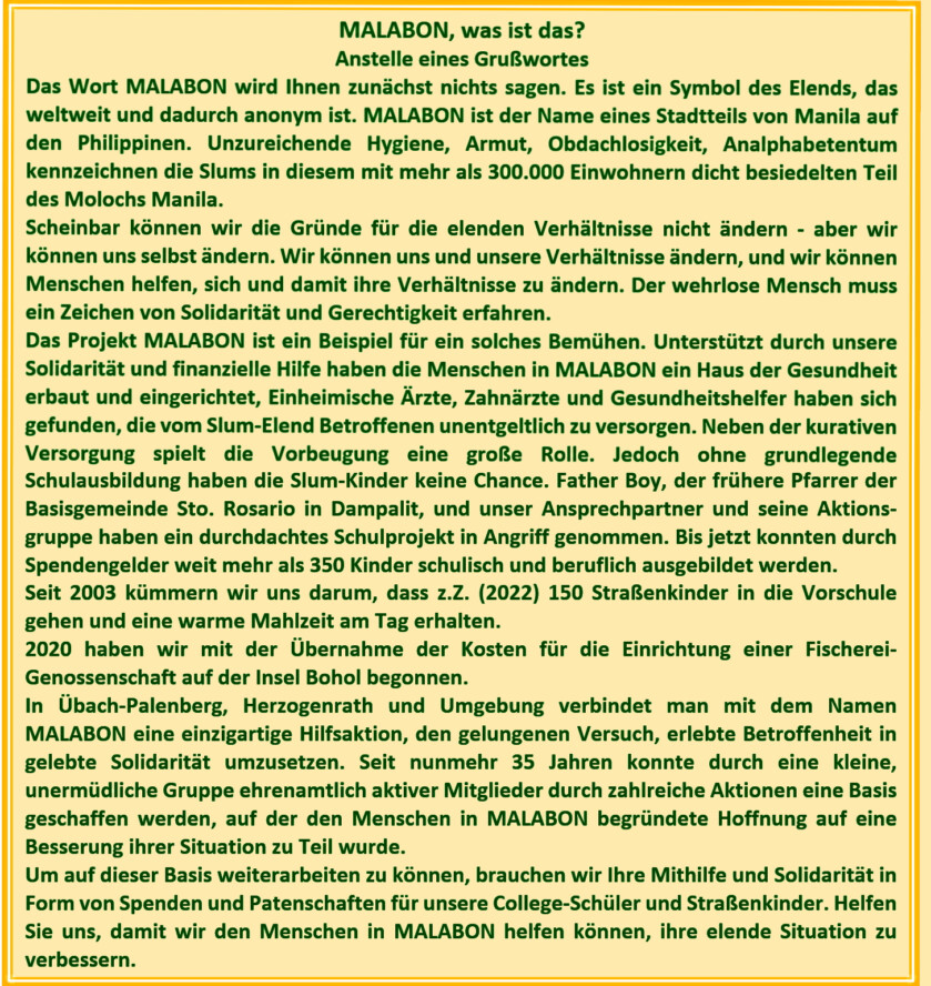 HELFEN SIE UNS, DEN MENSCHEN IN MALABON ZU HELFEN!